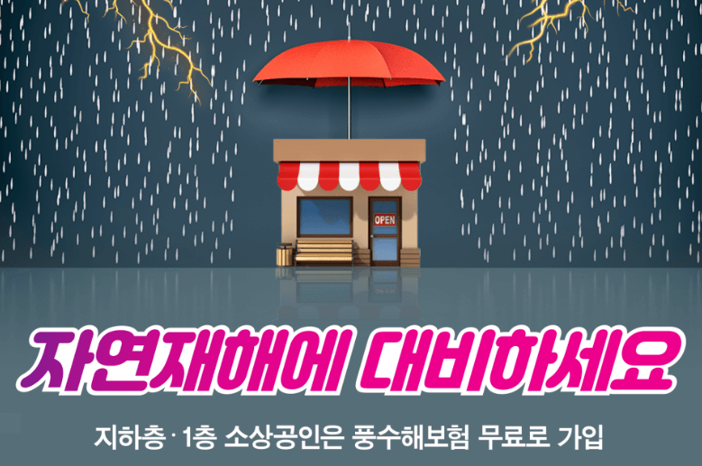 현재, 지하층이나 1층에서 영업하는 소상공인은 무료로 풍수해보험에 가입할 수 있게 되었습니다.